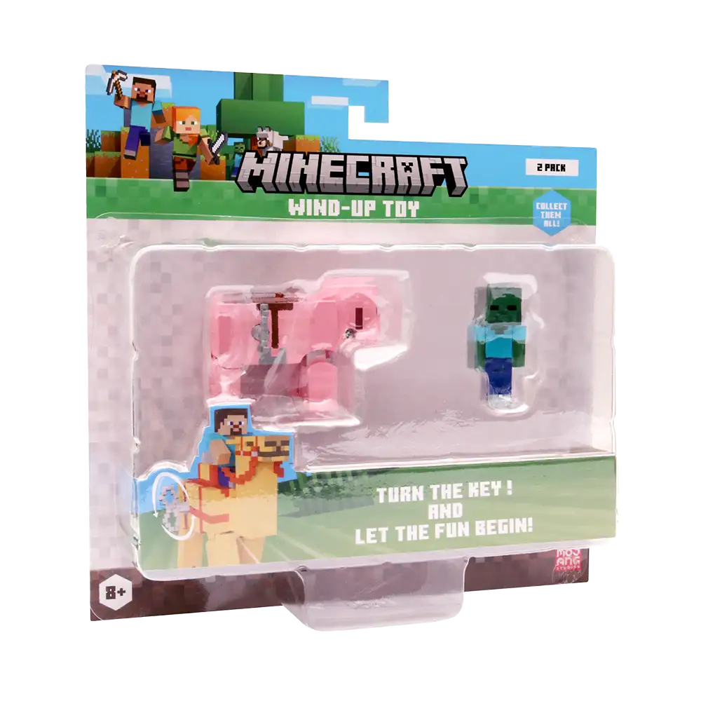 Este set de Motorcito Wind Up incluye una figura Minecraft y un animal del juego, ambos de tamaño aproximado de 5 cm, que caminan solos al darles cuerda. Este tipo de juguetes añade un elemento de acción que los diferencia: no sólo ver, también interacción física. La mecánica de cuerda suele estar en la base, con motor sencillo, hecho para uso seguro, fabricado con plástico rígido de calidad y mecanismo interno protegido.