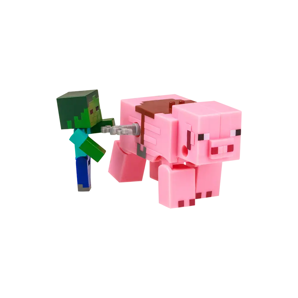 El animalito puede ser un creeper, zombie u otro mob del juego, móvil gracias a la mecánica. También están pintados con los colores típicos, bloques decorativos, perfiles cuadriculados. Ideal para sorprender: los niños introducen la cuerda, sueltan, y la figura se desplaza. Gran valor lúdico porque introduce causa-efecto, motricidad, coordinación ojo/mano. Perfecto para regalo, para exhibir o para jugar en el suelo o en superficies llanas. Edades recomendadas: 3 años en adelante