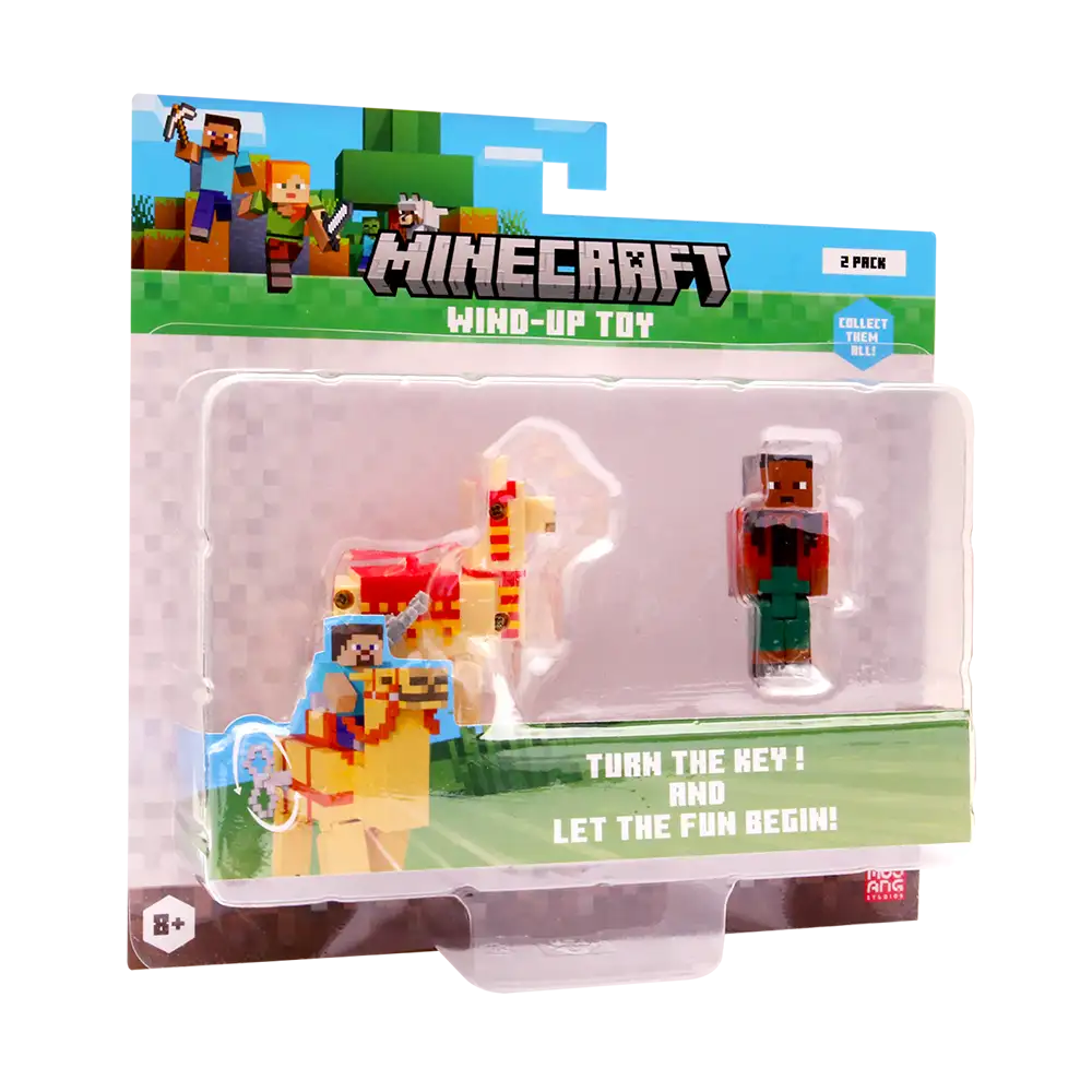 Este set de Motorcito Wind Up incluye una figura Minecraft y un animal del juego, ambos de tamaño aproximado de 5 cm, que caminan solos al darles cuerda. Este tipo de juguetes añade un elemento de acción que los diferencia: no sólo ver, también interacción física. La mecánica de cuerda suele estar en la base, con motor sencillo, hecho para uso seguro, fabricado con plástico rígido de calidad y mecanismo interno protegido.