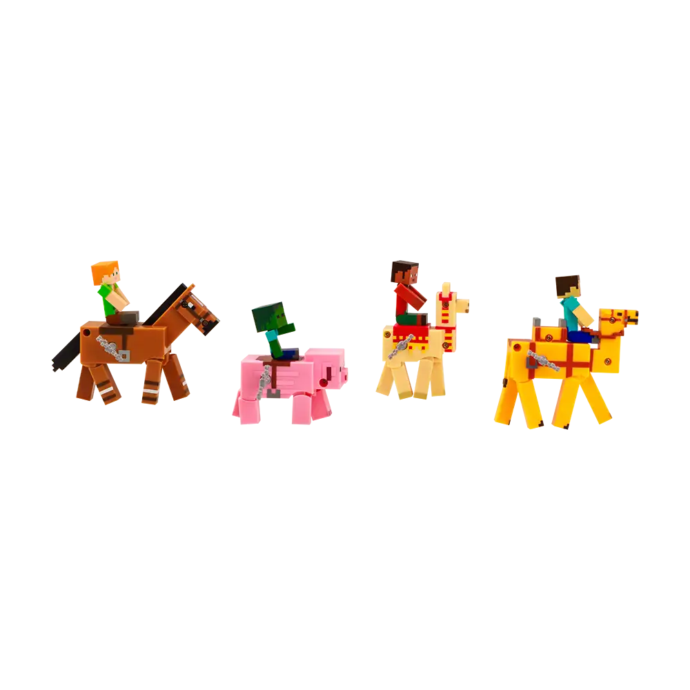 El animalito puede ser un creeper, zombie u otro mob del juego, móvil gracias a la mecánica. También están pintados con los colores típicos, bloques decorativos, perfiles cuadriculados. Ideal para sorprender: los niños introducen la cuerda, sueltan, y la figura se desplaza. Gran valor lúdico porque introduce causa-efecto, motricidad, coordinación ojo/mano. Perfecto para regalo, para exhibir o para jugar en el suelo o en superficies llanas. Edades recomendadas: 3 años en adelante