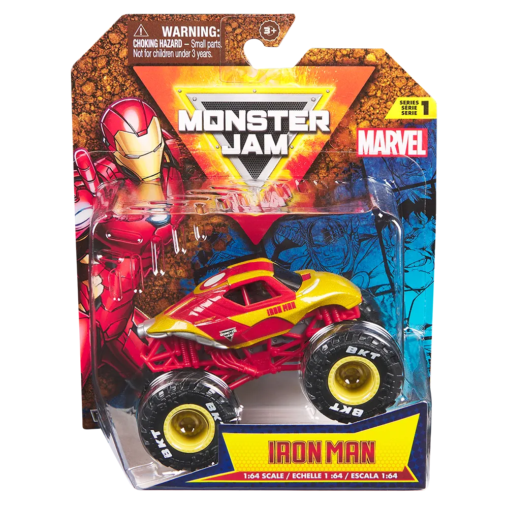 Monster Jam | ¡Monster Jam te permite crear tus propias acrobacias épicas, al igual que el espectáculo en vivo! Tomá el control con los vehículos de juguete de y viví las mejores aventuras ¡Juguetes reales, acción real! Ampliá tu colección con los Monster Jam de los superhéroes de Marvel. Ideales para los fanáticos de la saga. Además, son un regalo perfecto para los niños y niñas de 3 años en adelante. Convertite en el mejor corredor de estos monstruosos camiones de escala 1:64. Los juguetes Monster Jam son juguetes populares, de simulación y coleccionables
