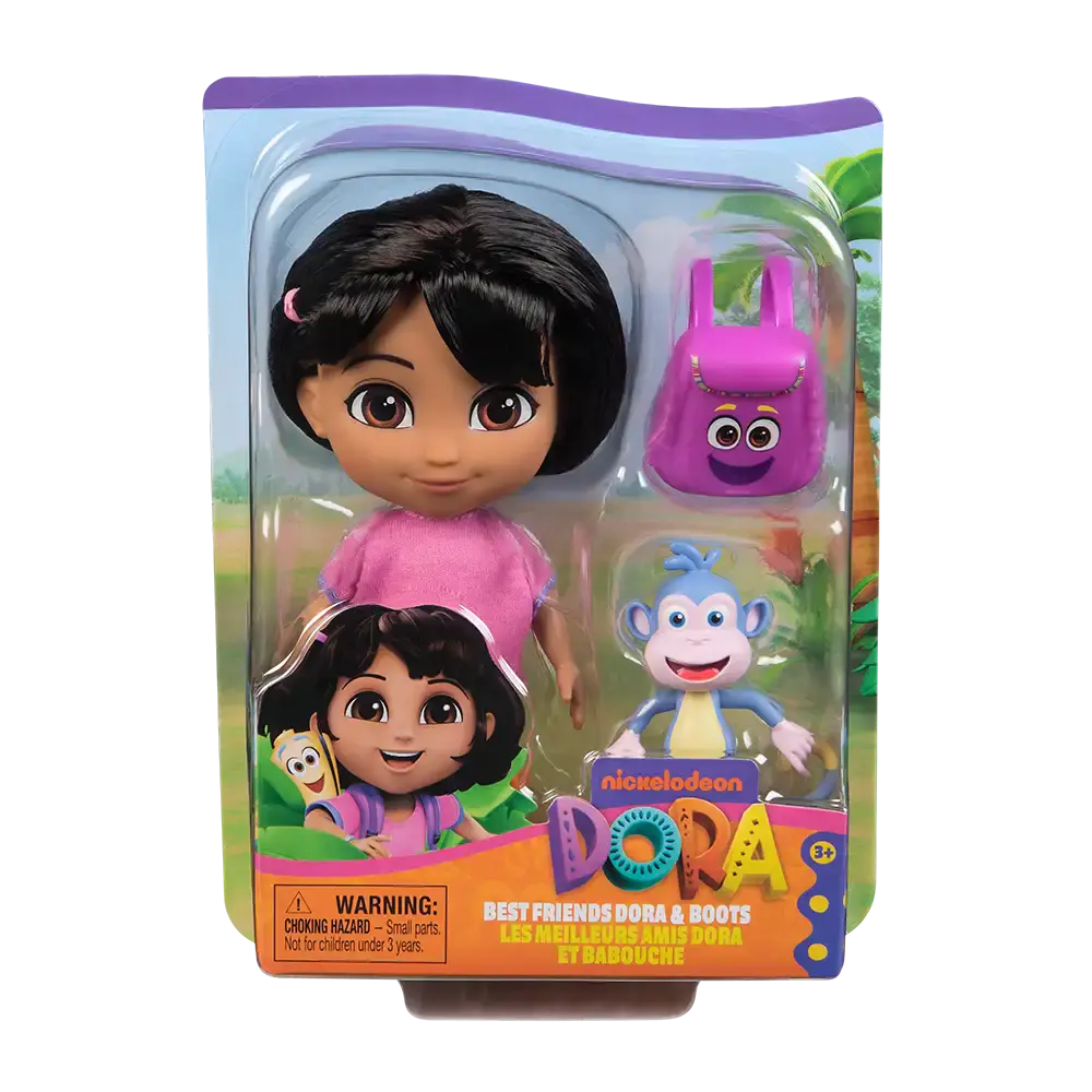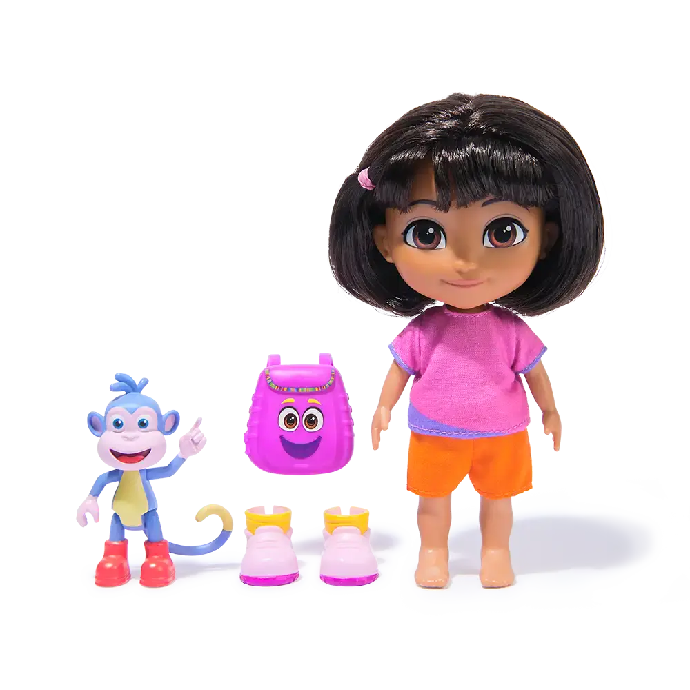 Dora la Exploradora presenta Every Day Dora, una muñeca de 6 pulgadas (15,24 cm) diseñada para traer estilo, aventura y mucha imaginación al juego diario. Dora tiene pelo real que se puede peinar y adornar con su hebilla, ropa removible que permite cambiar estilos, botas a su medida y viene con su amigo Boots para agregar diversión inmediata. Además trae mochila para accesorios, reforzando la experiencia de exploración que la línea representa.