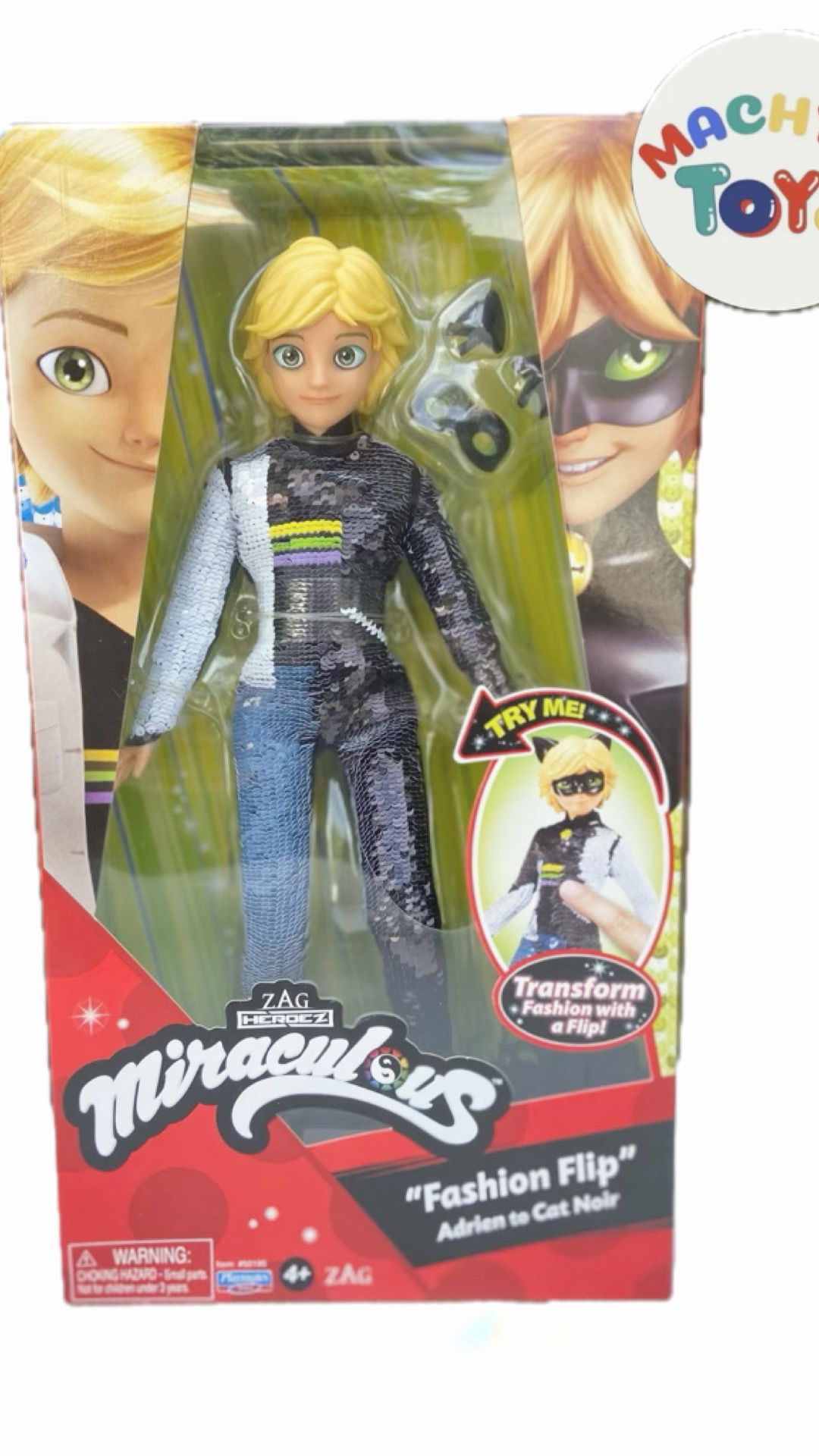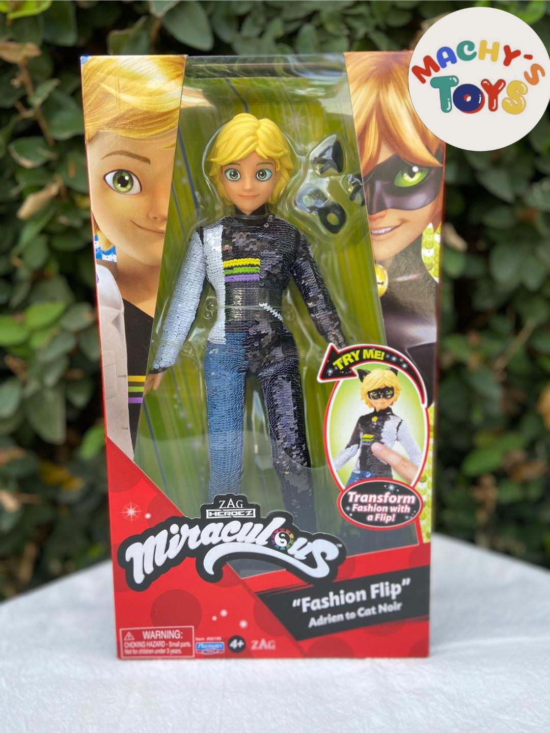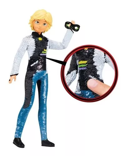 Figura articulada de 30cm, que se cambia de vestuario al pasar el dedo sobre la ropa, de Adrien a Cat Noir