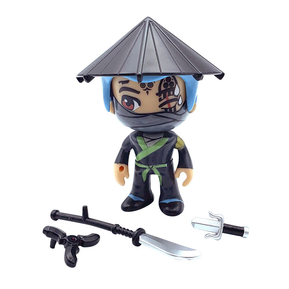 Juguete Figura Ninja 7cm con cuerpo intercambiable y cara doble con diferentes expresiones. Cada figura incluye 3 accesorios diferentes. Son 4 surtidos Ninja diferentes