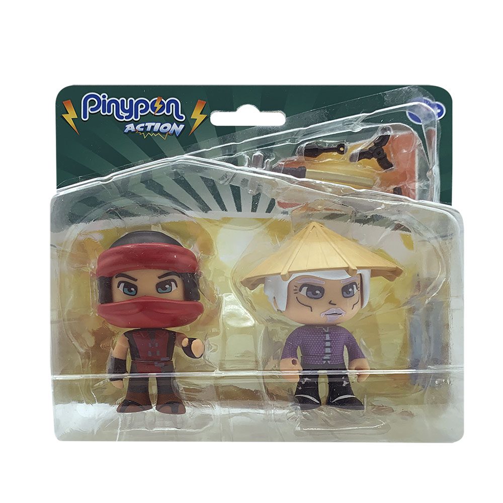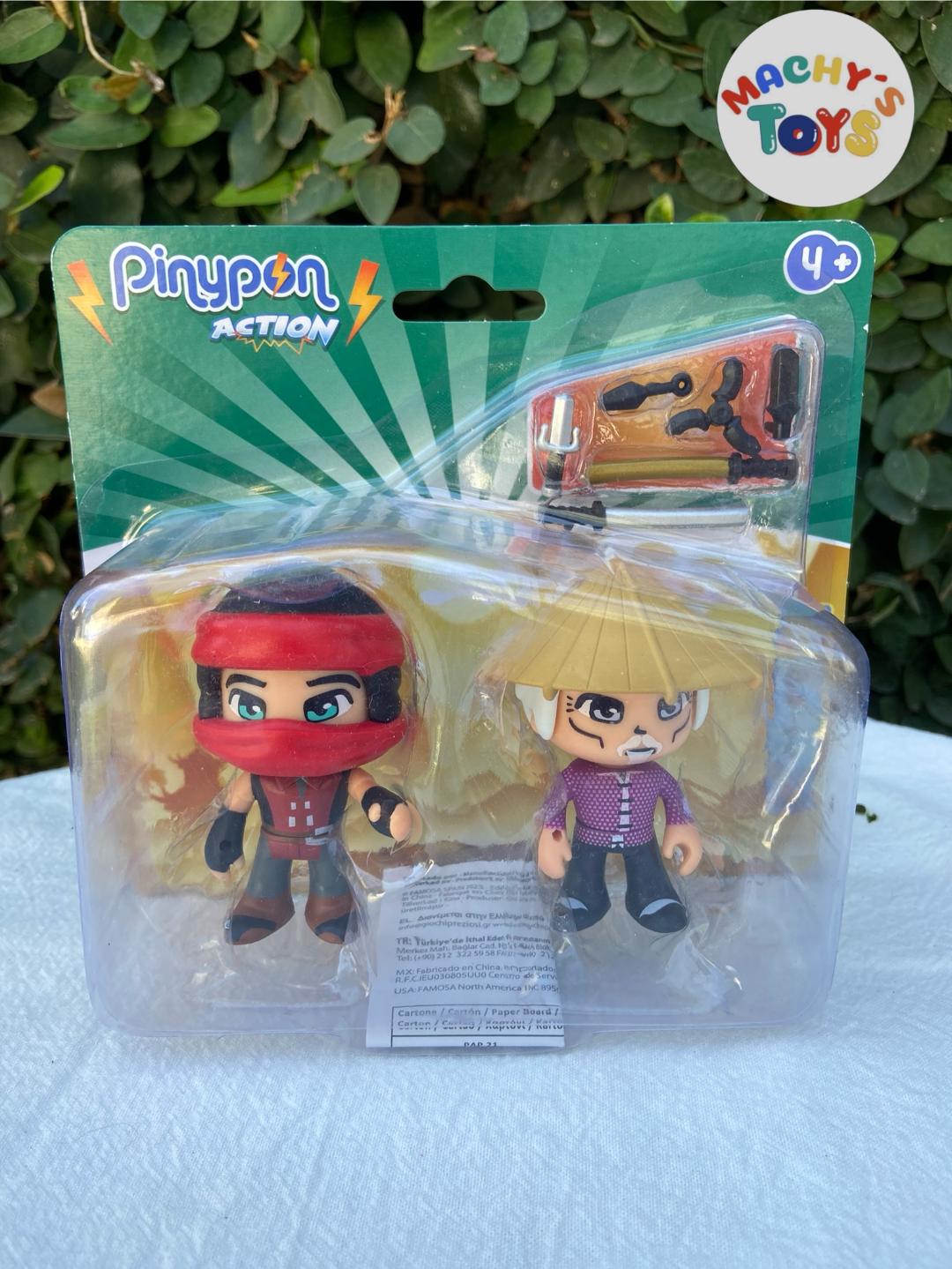 Pinypon Action | Juguete Figura Ninja Demon con moto decorada haciendo juego con su traje. Figura con cara doble de ninja y demonio, cuerpo intercambiable y 4 accesorios de armas ninja.