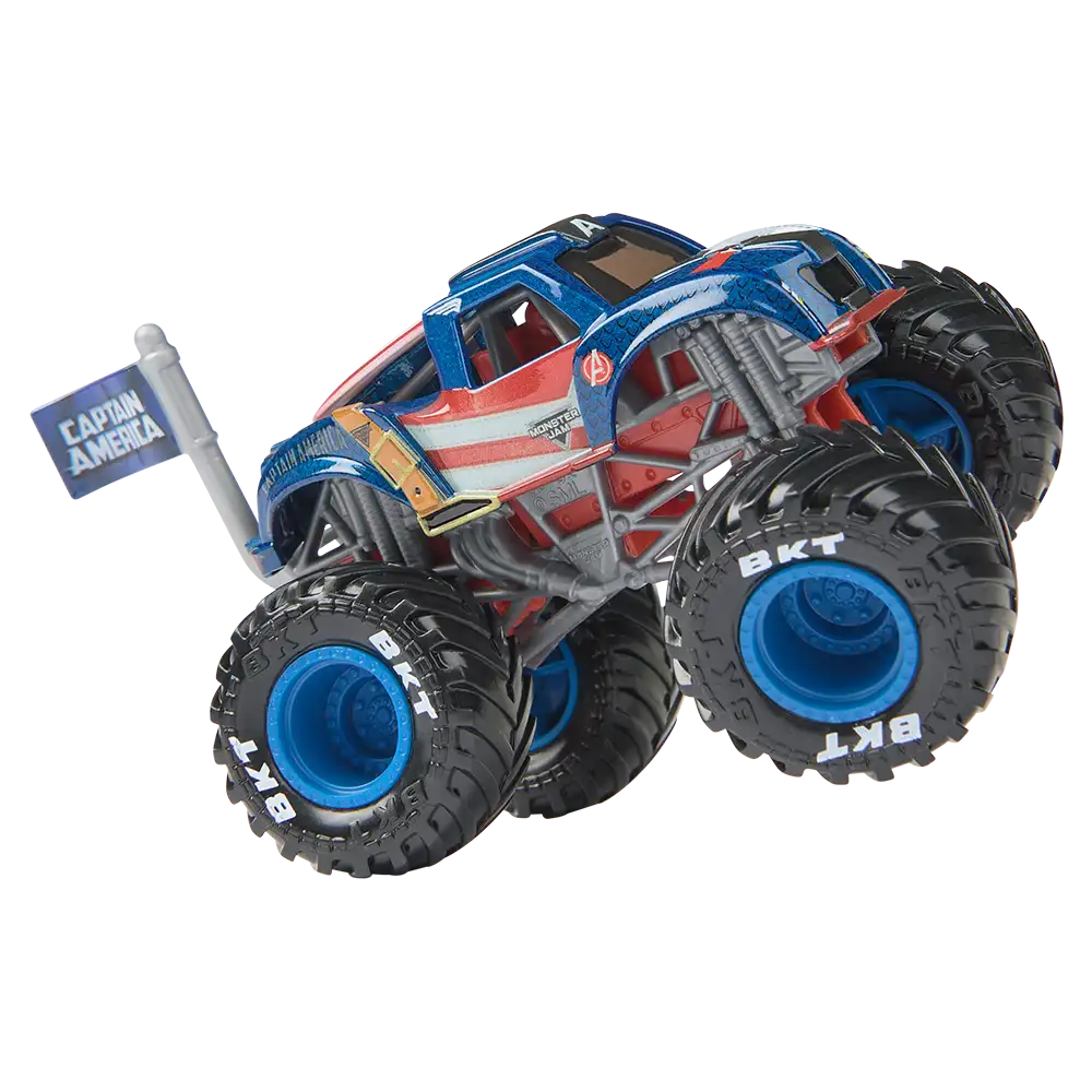 Monster Jam | ¡Monster Jam te permite crear tus propias acrobacias épicas, al igual que el espectáculo en vivo! Tomá el control con los vehículos de juguete y viví las mejores aventuras ¡Juguetes reales, acción real! Ampliá tu colección con los Monster Jam de los superhéroes de Marvel. Ideales para los fanáticos de la saga. Además, son un regalo perfecto para los niños y niñas de 3 años en adelante. Convertite en el mejor corredor de estos monstruosos camiones de escala 1:64. Los juguetes Monster Jam son juguetes populares, de simulación y coleccionables