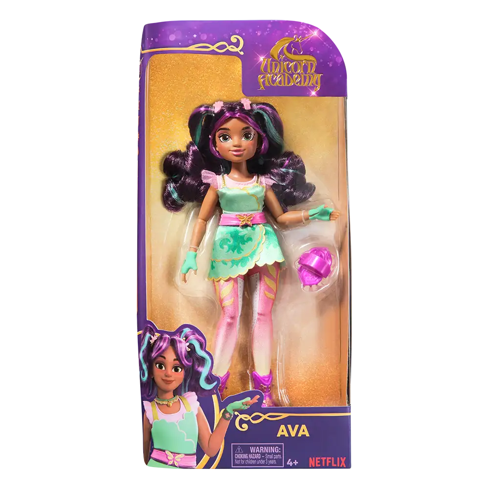Unicorn Academy | ¿Qué pasa si estás destinado a algo más… algo extraordinario? Una serie animada y una franquicia de aventuras original de Netflix, producida por Spin Master Entertainment, transportará al público a un mundo mágico mientras siguen a Sophia en su viaje de lo ordinario a lo extraordinario, mientras descubre su destino como jinete de unicornio. Unicorn Academy es el internado de los sueños de todo niño. Ubicada en la Isla Unicornio, Sophia y el resto de la clase de primer año deben unirse con sus unicornios para desbloquear sus poderes mágicos. Sólo entonces estos estudiantes aprenderán a convertirse en venerados protectores de la isla y su magia, todo mientras equilibran el trabajo de clase, navegan por amistades y rivalidades y enfrentan las pruebas y tribulaciones de la típica vida adolescente. Sophia, Ava, Isabel muñecas con pelo ondulado look fashion con cepillo para peinarlas. Conocé toda la linea de juguetes de Academia Unicornio en Vulcanita.