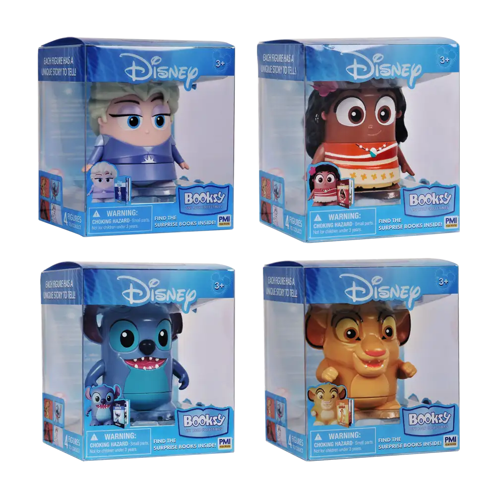 Booksy Disney es una colección innovadora que une juguetes coleccionables y lectura infantil en un mismo producto. Cada set incluye una figura de 7,5 cm de los personajes más queridos de Disney y un minilibro de 24 páginas dobles en español (tamaño 5×3,5 cm), diseñado para que los chicos disfruten de un cuento ilustrado en cualquier momento.