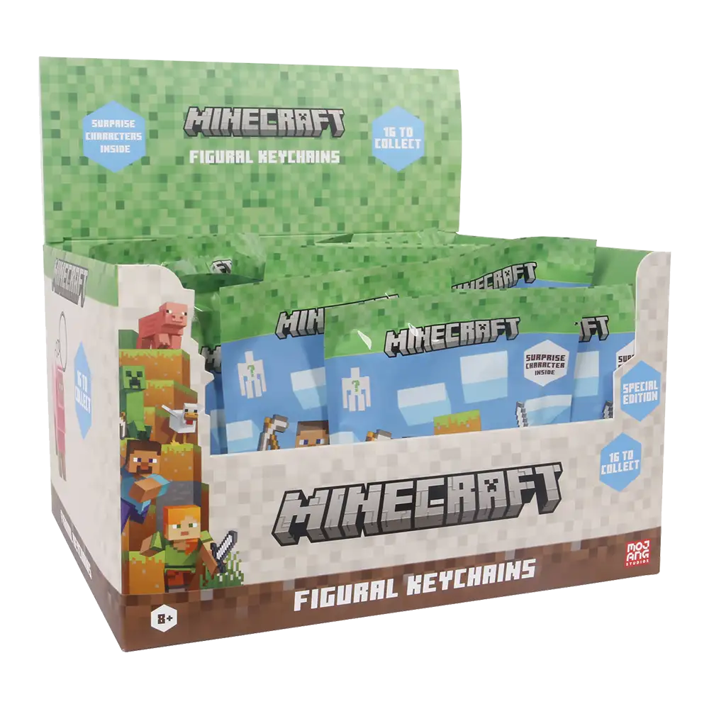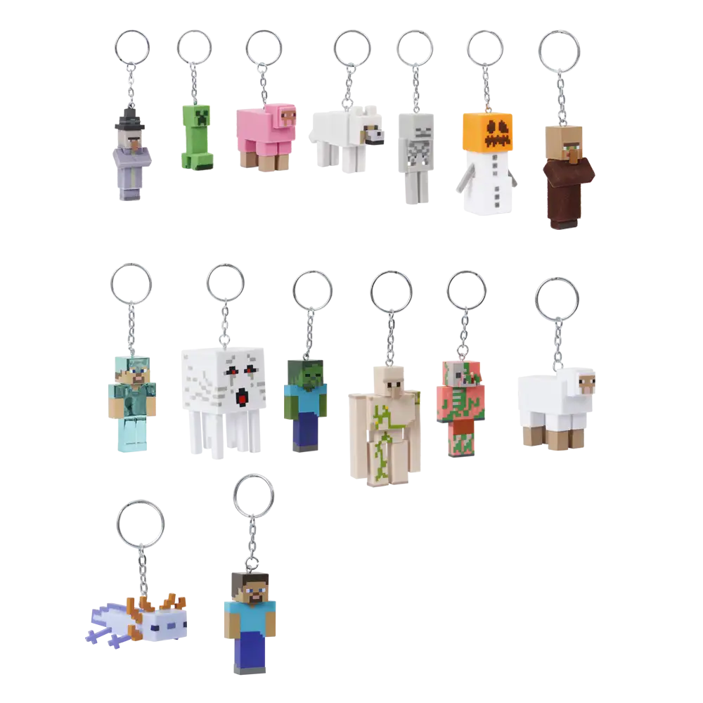Cada personaje del surtido viene con un anillo metálico que permite colgarlo. Este formato permite colecciones completas, intercambiar personajes con amigos o completar la serie. Los fans valoran mucho el acabado auténtico, los detalles pixelados, y la colección como parte de la experiencia Minecraft. Incluye empaquetado tipo blister o lllavero visible, ideal para regalar. Materiales: plástico ABS + metal (aro), sin piezas pequeñas sueltas que representen riesgo para edades a partir de 3 años