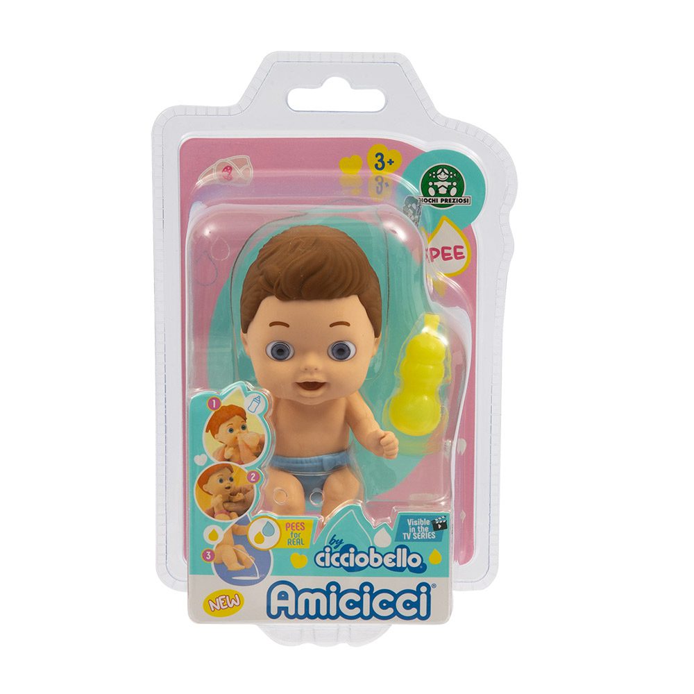 Amicicci | Muñecos pequeños bebés flexibles y blanditos con expresiones faciales con mamadera. Cuando la toma y le apretas la pancita, hace pis. Ojos de verdad Coleccionables. Juguetes con episodios de You Tube. Estimula el desarrollo de tu hijo desde el primer momento. Estos divertidos muñecos pequeños super blanditos pueden ser el mejor compañero de juego para tu hijo.
